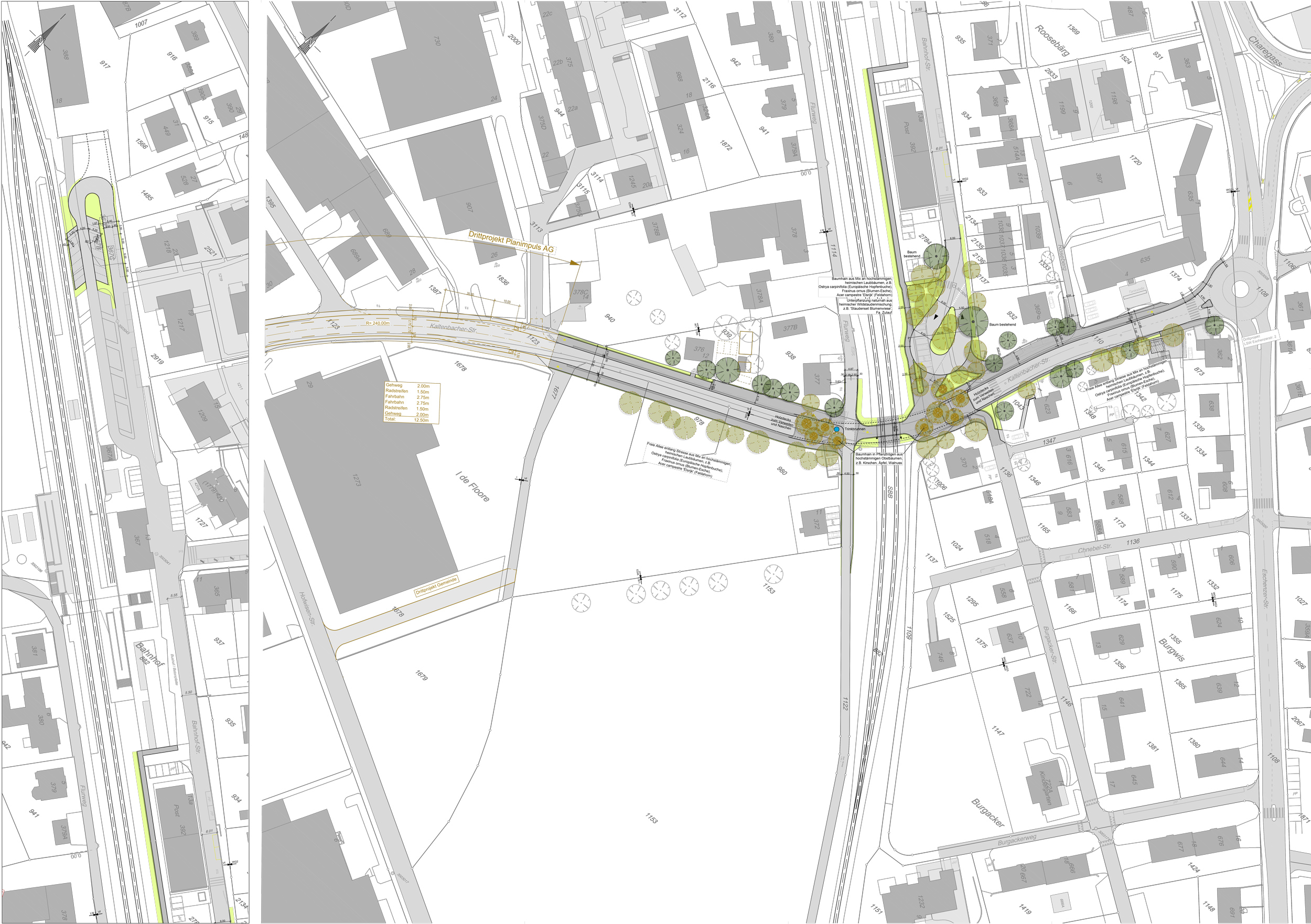 Mit Baumhainen, Sitzdecks und einem Trinkbrunnen für Velofahrende entsteht über der Unterführung ein grüner Aufenthaltsort statt eines reinen Verkehrsknotens.