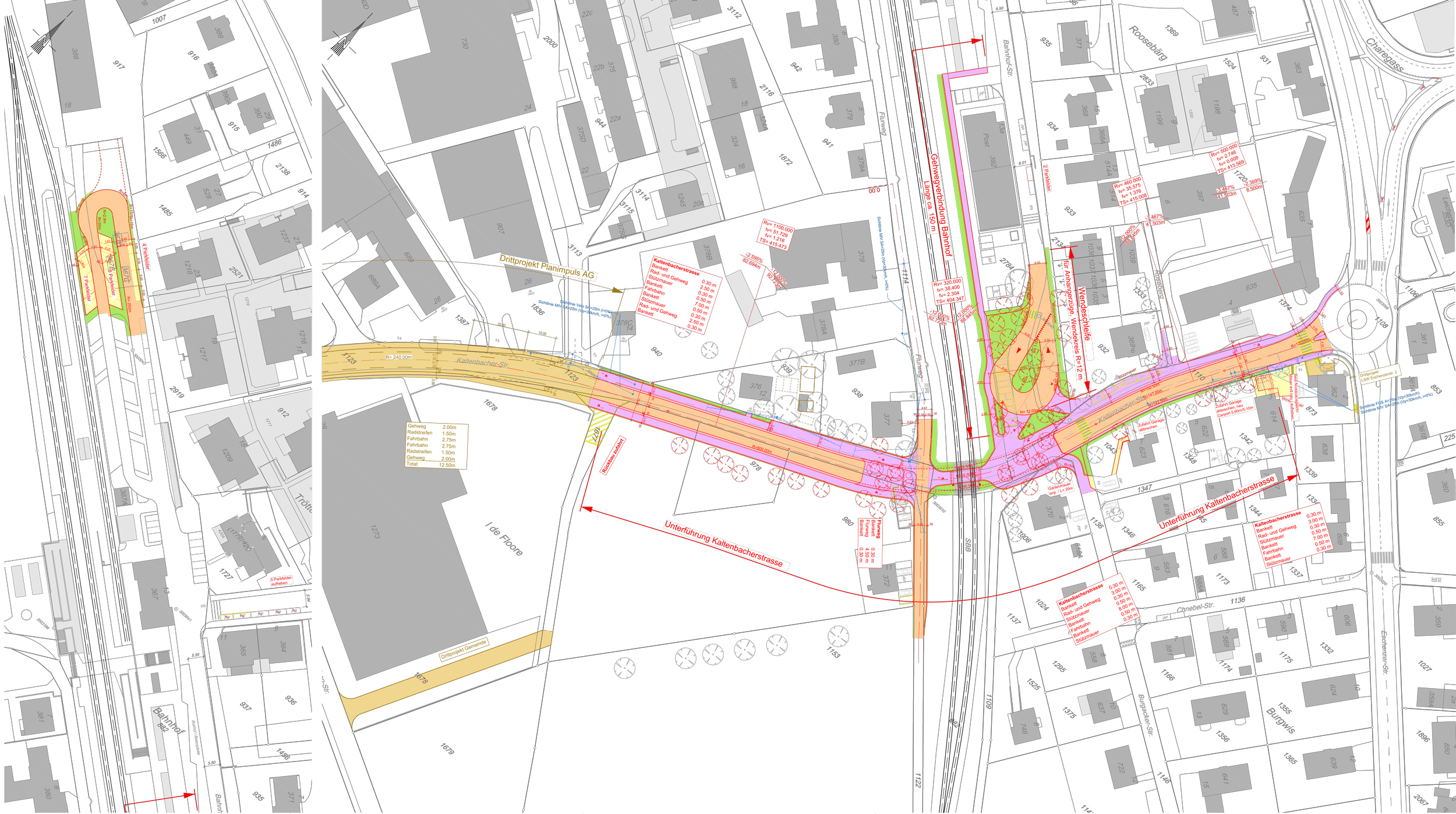 Mit der geplanten Strassenunterführung an der Kaltenbacherstrasse sollen diese Staus reduziert und die Bahnquerung für alle Verkehrsteilnehmenden sicherer und leistungsfähiger gestaltet werden.